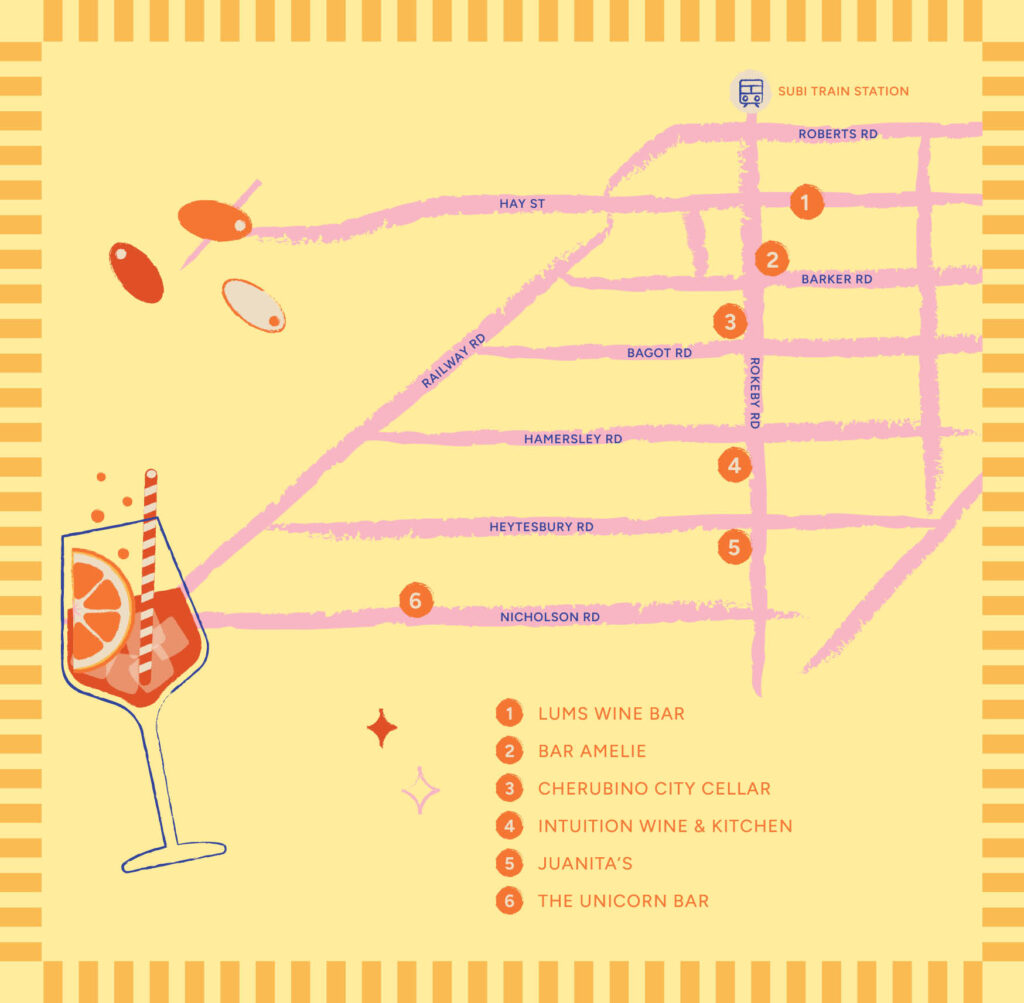 Roam your way through Subi following the trusty trail and drop into any (or all) of the participating venues. Each one is serving up a bespoke vino & cicchetti pairing designed for grazing, sharing, and sipping as you go.
